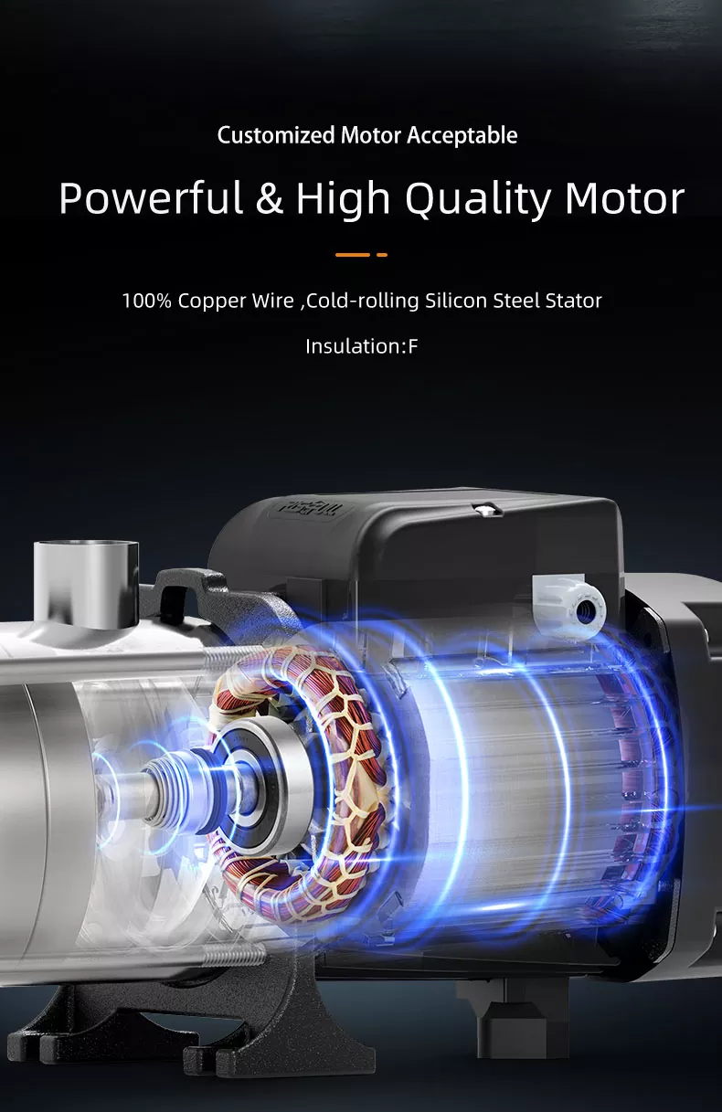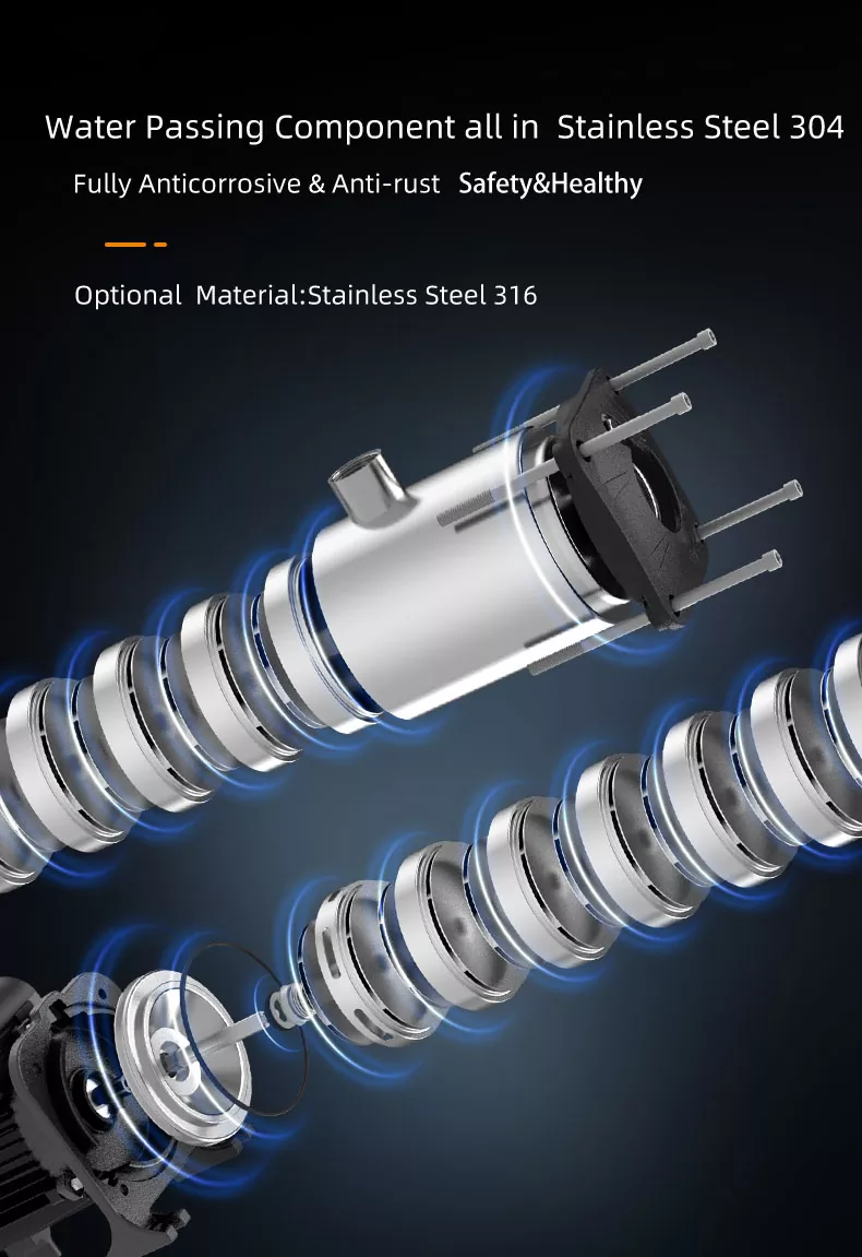 تعد Smart Smart Smart Series Smart Series Series Series Series Fehult-Stains Multivage Pump من منتجات الطرد المركزي المتعدد المراحل الفولاذ المقاوم للصدأ ، منتجًا ناضجًا نسبيًا في السوق حاليًا مع بنية مضغوطة وضوضاء عمل منخفضة ، وتكيف تصل إلى 44-70 ٪. جميع مكونات تمرير المياه مصنوعة من الفولاذ المقاوم للصدأ AISI304. يستخدم على نطاق واسع في